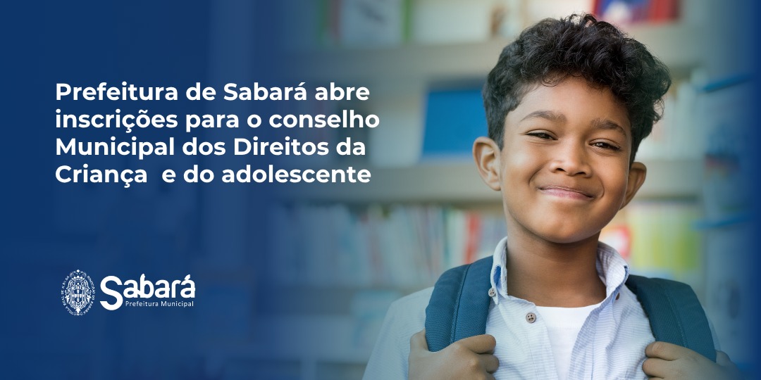 A Prefeitura de Sabará, por meio da Secretaria de Desenvolvimento Social, abre inscrições para composição do novo quadro de representantes da sociedade civil no Conselho Municipal dos Direitos da Criança e do Adolescente. As inscrições poderão ser feitas entre os dias 4 de agosto e 4 de setembro de 2025.