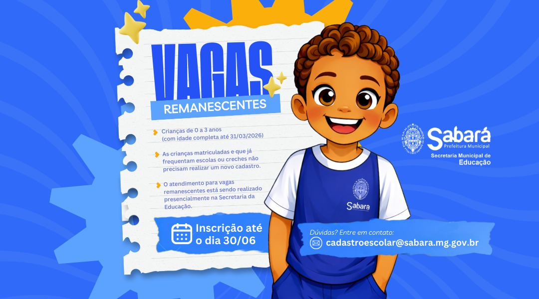 Em caso de dúvidas ou para mais informações, a Secretaria Municipal de Educação disponibiliza o e-mail cadastroescolar@sabara.mg.gov.br.