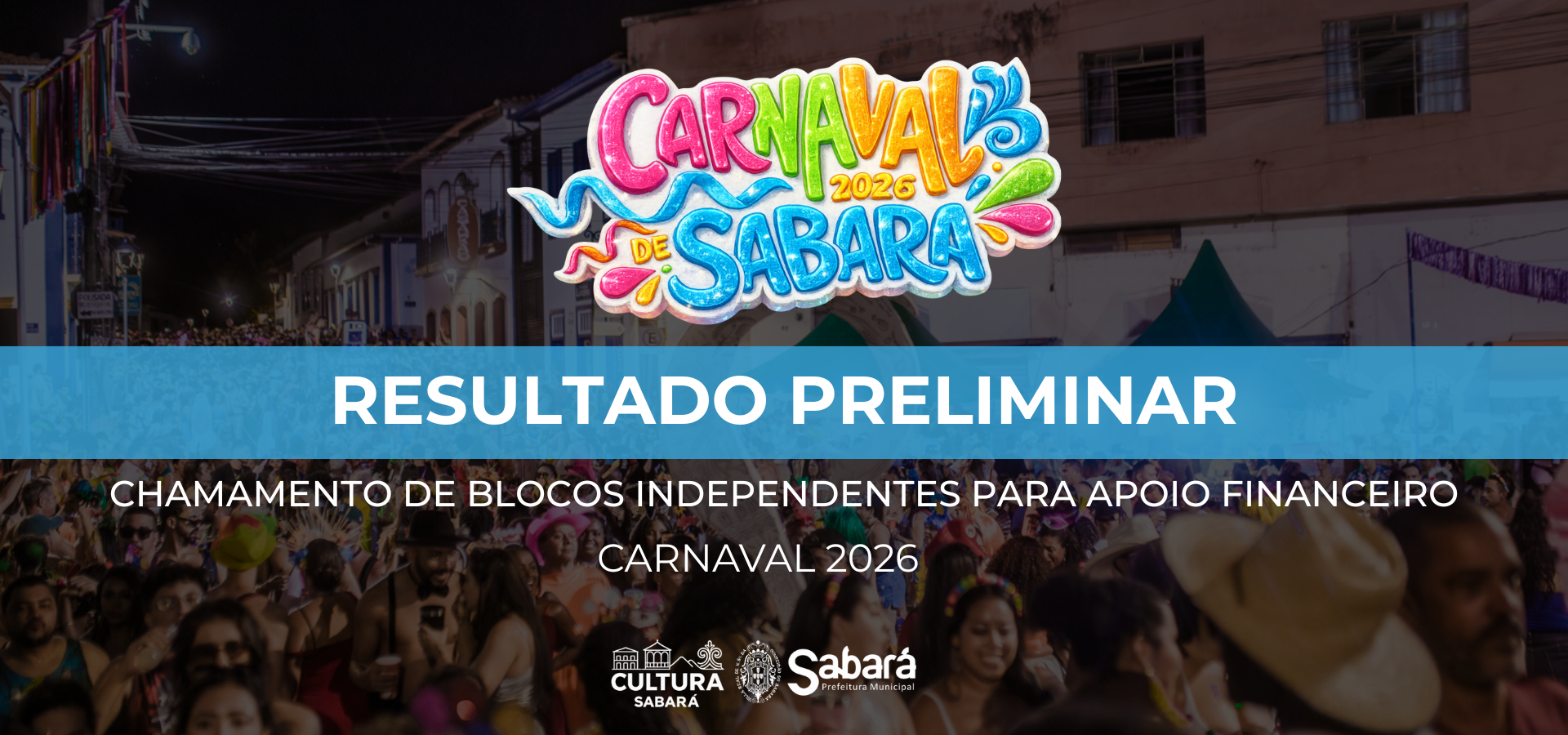 A Secretaria Municipal de Cultura de Sabará torna público o Resultado Preliminar do Chamamento de Blocos para Apoio Financeiro – Carnaval 2026.